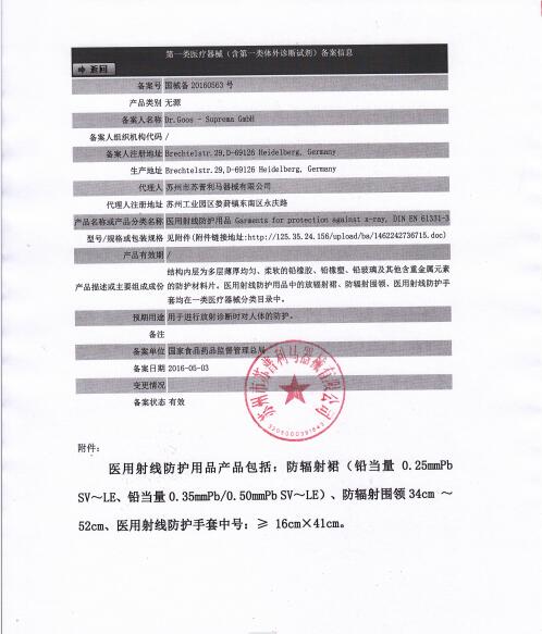 蘇州市蘇普利馬器械有限公司是專業(yè)從事醫(yī)用X射線防護(hù)系列用品、裝置、代理德國(guó)Dr.Goos-Suprema Gmbh.顧斯博士-蘇普利馬有限公司生產(chǎn)的原裝進(jìn)口鉛衣及醫(yī)用觀片燈的生產(chǎn)銷(xiāo)售企業(yè).生產(chǎn)的X射線防護(hù)圍裙均來(lái)自美國(guó)SHIELDING公司的最新型超薄型防護(hù)材料,,具有防護(hù)性能可靠、穿戴舒適、輕便柔軟、操作自如等諸多優(yōu)點(diǎn).產(chǎn)品均通過(guò)相關(guān)X射線檢測(cè)機(jī)構(gòu)的檢測(cè),達(dá)到產(chǎn)品標(biāo)準(zhǔn)的要求.X射線醫(yī)用膠片觀察燈。是采用全LFD燈光技術(shù)。具有重量輕,光源均勻,亮度高,無(wú)頻閃,不變型,使用壽命長(zhǎng)等特點(diǎn)。均取得了生產(chǎn)許可及醫(yī)查看更多>>